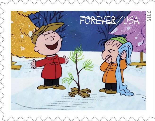 On October 1, 2015, in Santa Rosa, CA, the U.S. Postal Service® will issue A Charlie Brown Christmas stamps (Forever® First-Class Mail® priced at 49 cents) in 10 designs, in a pressure-sensitive adhesive (PSA) booklet of 20 stamps (Item 680200).