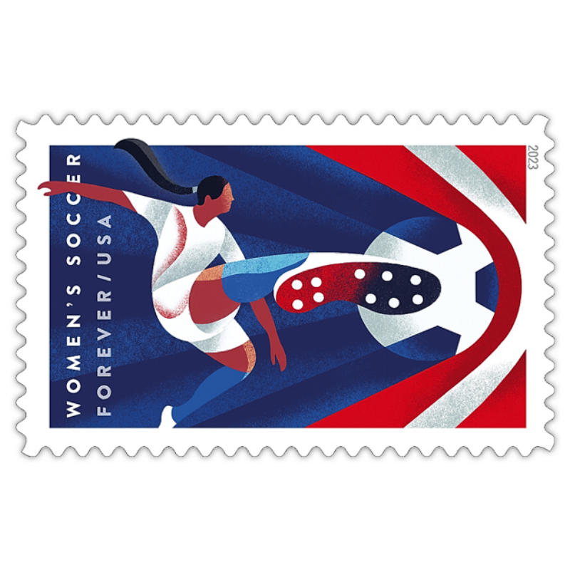 The Women's Soccer stamp is being issued as a Forever® stamp. This Forever stamp is always equal to the current First-Class Mail® one-ounce price.