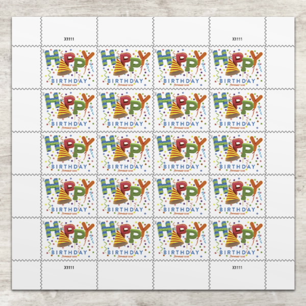 The Happy Birthday stamp is being issued as a Forever@ stamp. This Forever stamp is always equal in value to the current First-l