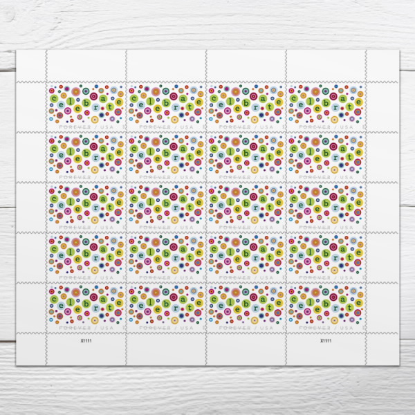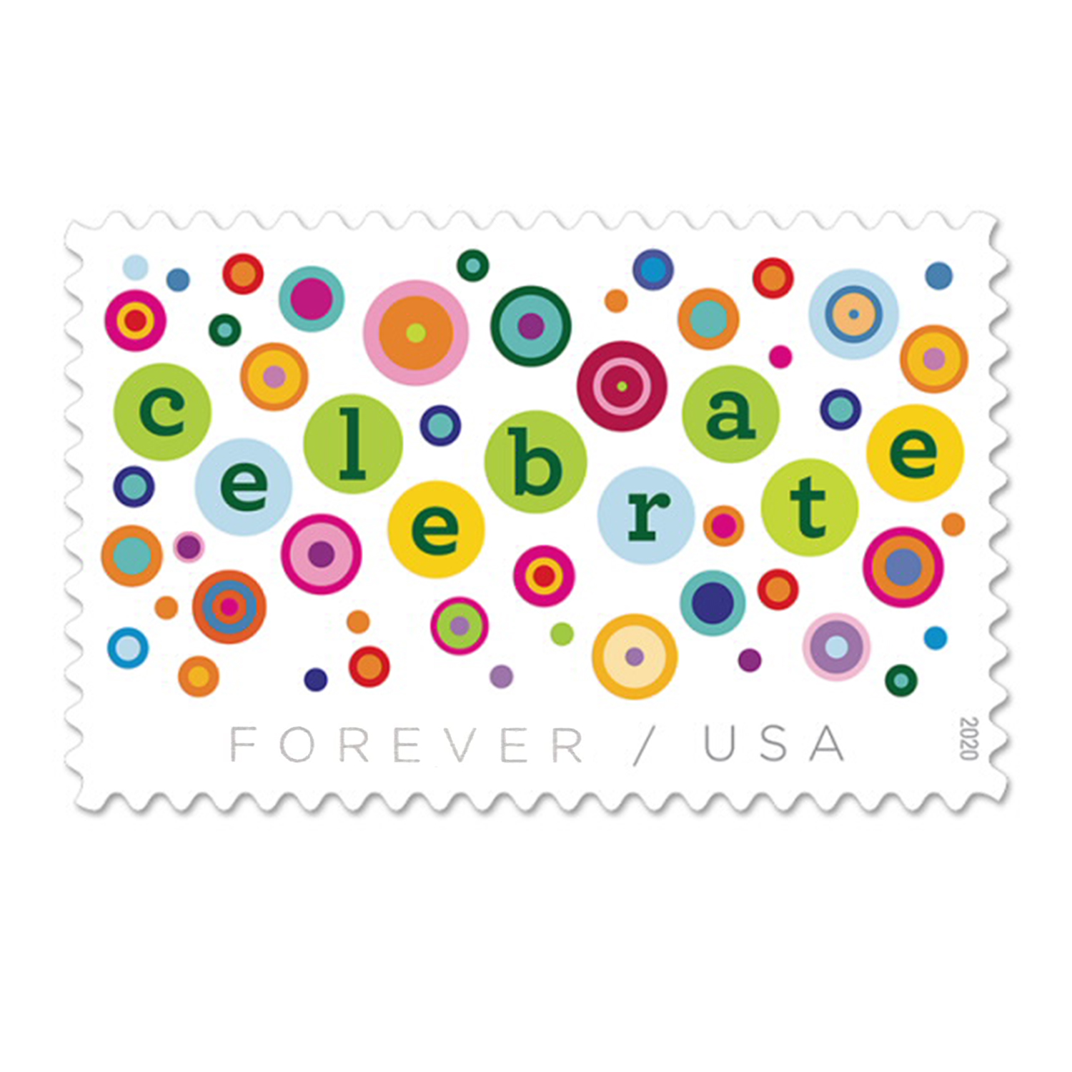 Let's Celebratel is being issued as a Forevere stamp. This Forever stamp will always be equal in value to the current First-Class